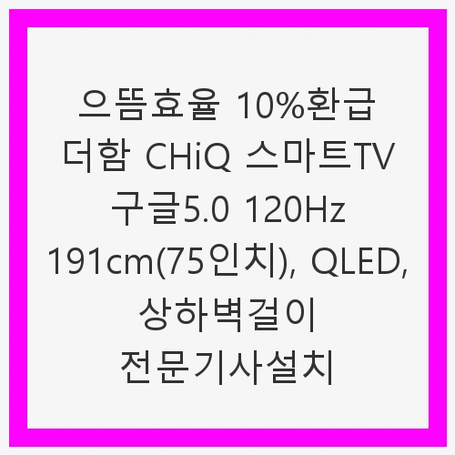 👉으뜸효율 10%환급 더함 CHiQ 스마트TV 구글5.0 120Hz 191cm(75인치), QLED, 상하벽걸이 전문기사설치 바로보기